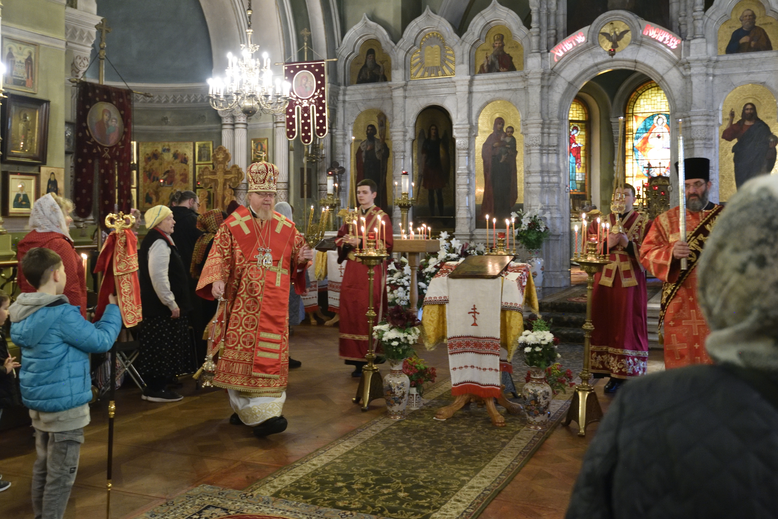 По запричастном стихе протоиерей Георгий Давыдов прочитал Пасхальное послание управляющего Берлинско-Германской епархией архиепископа Рузского Тихона.