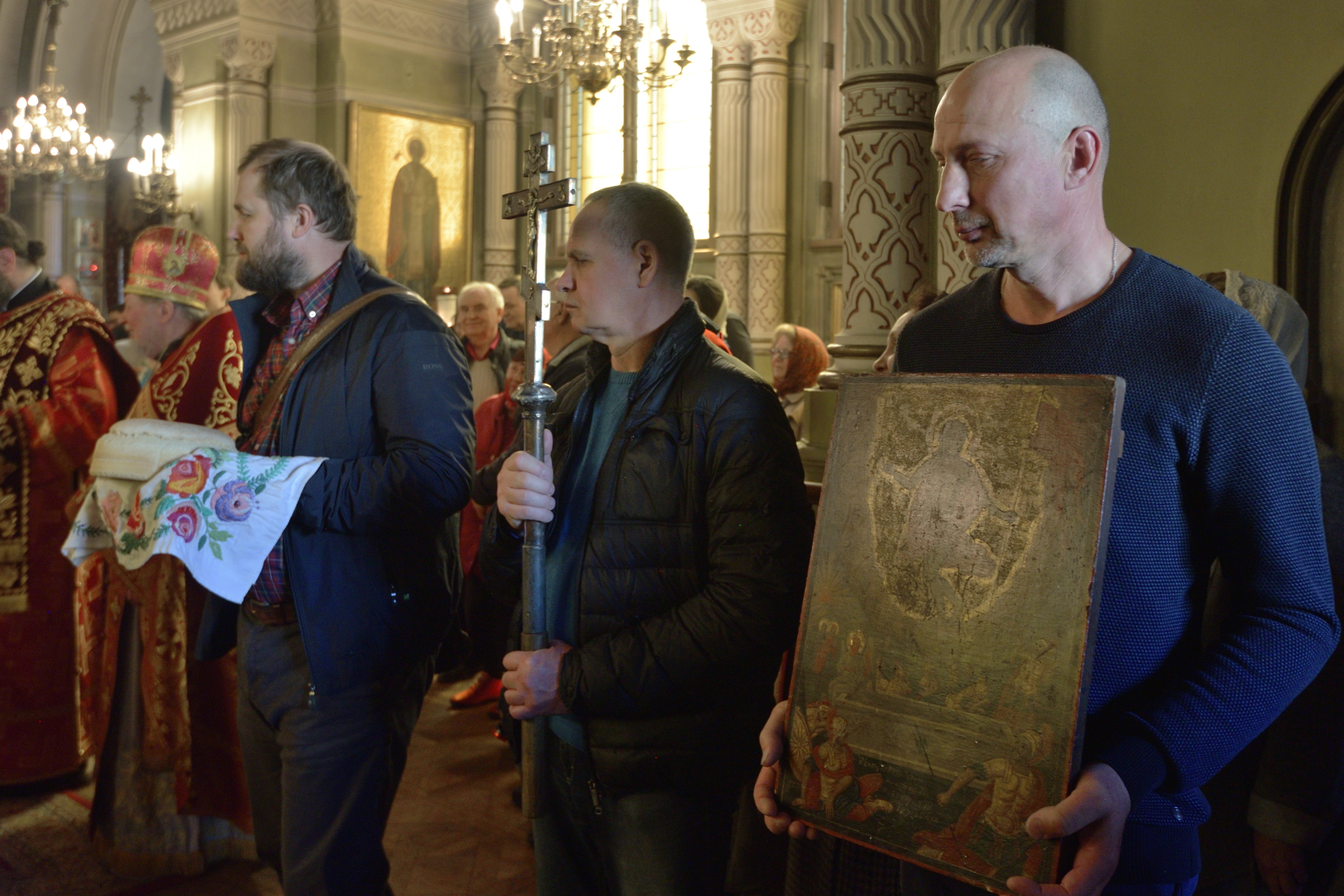 По заамвонной молитве архиепископ Тихон совершил водосвятный молебен, после которого — крестный ход вокруг храма.